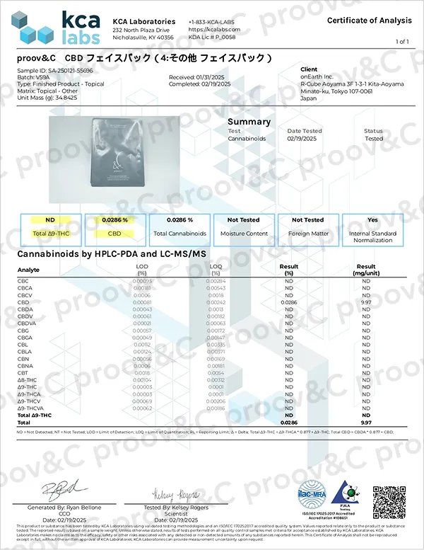proov&Cでは、CBD製品の安全性を何よりも大切にしており、以下の体制と実績によって、安全性が科学的に裏付けられています。